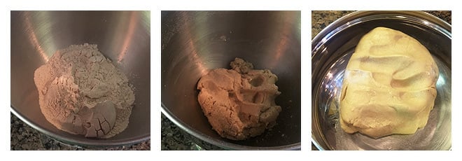 Start adding water, little by little until the dough comes together.
