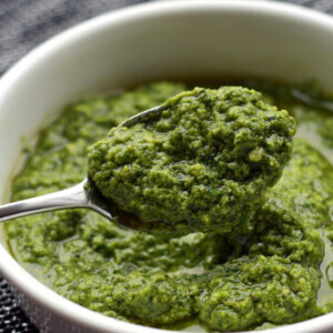 If you love Italian, then you have to love Pesto. Personally it’s my favorite Italian sauce for pastas, salads and baked potatoes. Pesto is traditionally made using crushed garlic, basil, olive oil, pine nuts and Parmesan cheese.