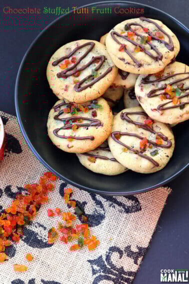 Chocolate Stuffed Tutti Frutti Cookies (Eggless)