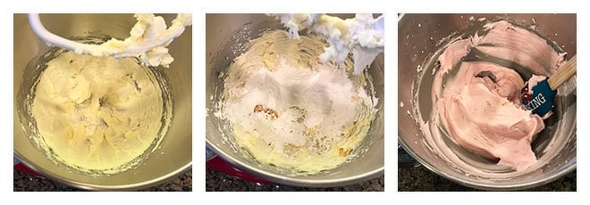 - Now add powdered sugar, 1 cup at a time, mixing after each addition.
