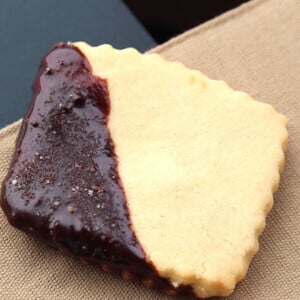 The dough for shortbread cookies can be put together in 10 minutes, it’s that simple. Just mix everything together until combined and then chill the dough. That’s it! These buttery cookies have a crumby texture because of a higher butter content.