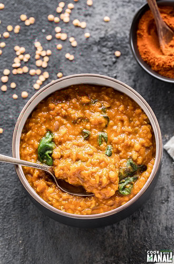 Ethiopian Lentil Stew made easy in the Instant Pot! This spicy red lentil stew is full of flavors and the addition of spinach makes it more nutritious! Vegan & gluten-free.
