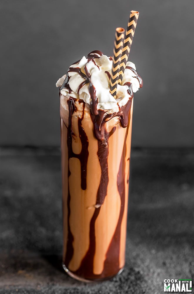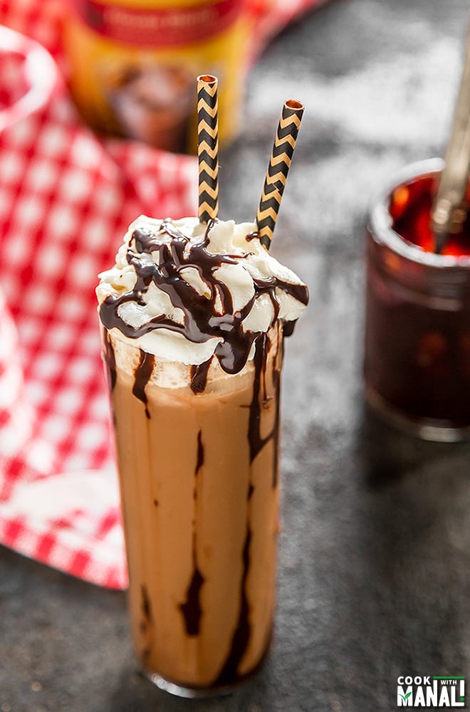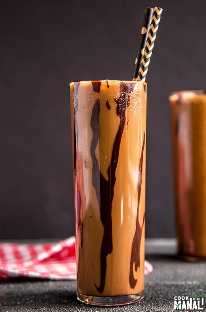 You guys know that I love coffee but my husband not so much. He actually likes iced coffee if it doesn’t taste bitter and this one fits the bill perfectly. To make this Iced Coconut Maple Mocha, simply pour coconut milk along with ice cubes in a glass. Add your favorite chocolate sauce and then pour over brewed coffee. Add a splash of maple syrup and enjoy. I topped mine with some whipped cream and extra chocolate sauce to make it look extra fancy and I suggest you do the same!